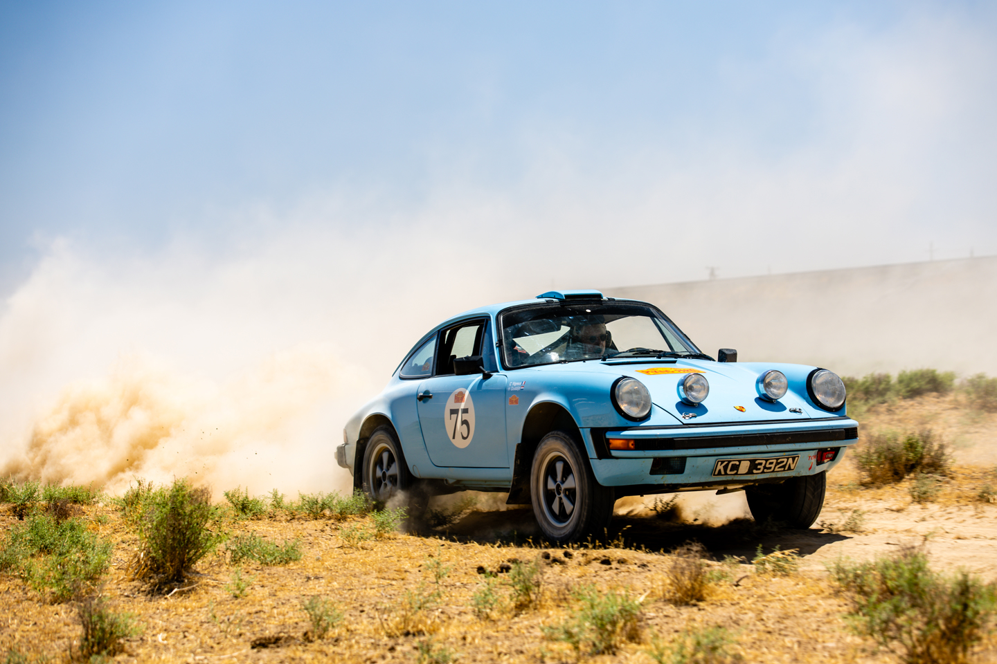 At the sharp end Brian Scowcroft and Mark Gilmour lost their ignition at the beginning of the section, but quick and calm thinking from Mark quickly diagnosed the issue as a blown fuse and rectified the problem. Brian then did the rest, pushing the Fangio to claw back the time. They zeroed the section. The sun was out, and it was hot, so this was a physical challenge as well, and with the wind whipping up towering dust devils those in the open top cars had plenty of extra hazards to overcome.
