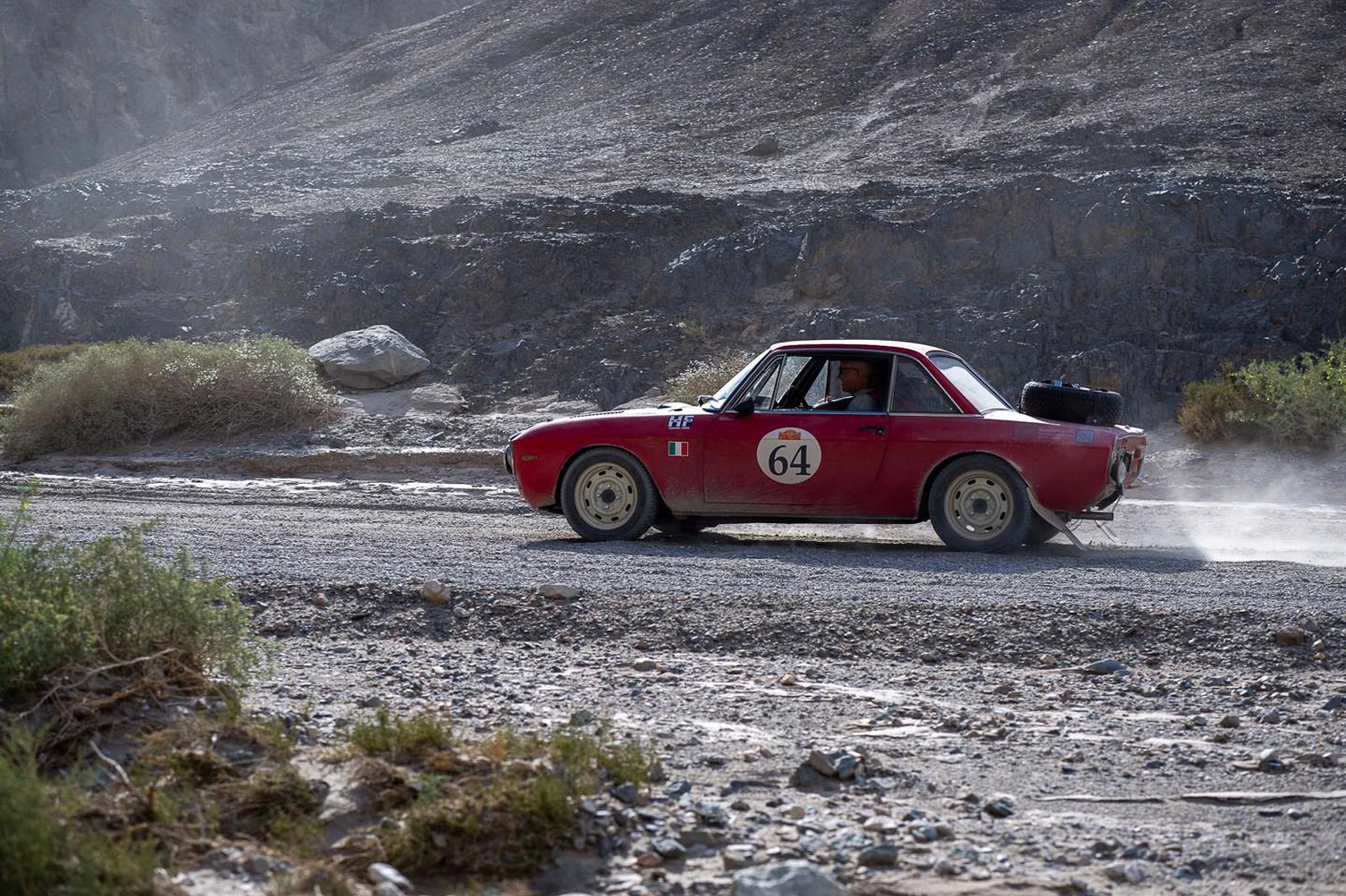 The MTC was remote in every sense of the word, and the only road out of the place was a rough construction track that dropped down to the desert floor. It was an exercise in patience, passable, but with some of the descents in and out of the numerous Wadi’s tricky to negotiate to say the least. At some point in the journey, Alejandro Caceres and Jose Luis Martinez Gutierrez, in the number 69 Mercedes 250 SE ran out of brakes, but with some mechanical assistance were back on their way again. Patrick Galbraith and Dean Aaron also needed to pull over, in the Pontiac GTO, a car that had been making some interesting noises in the gravel earlier in the day, but whatever had been causing them an issue they got back on their way again. After 38km of bone shaking and head banging, the track flowed into a canyon road, and then after that, the sweet relief of tarmac.