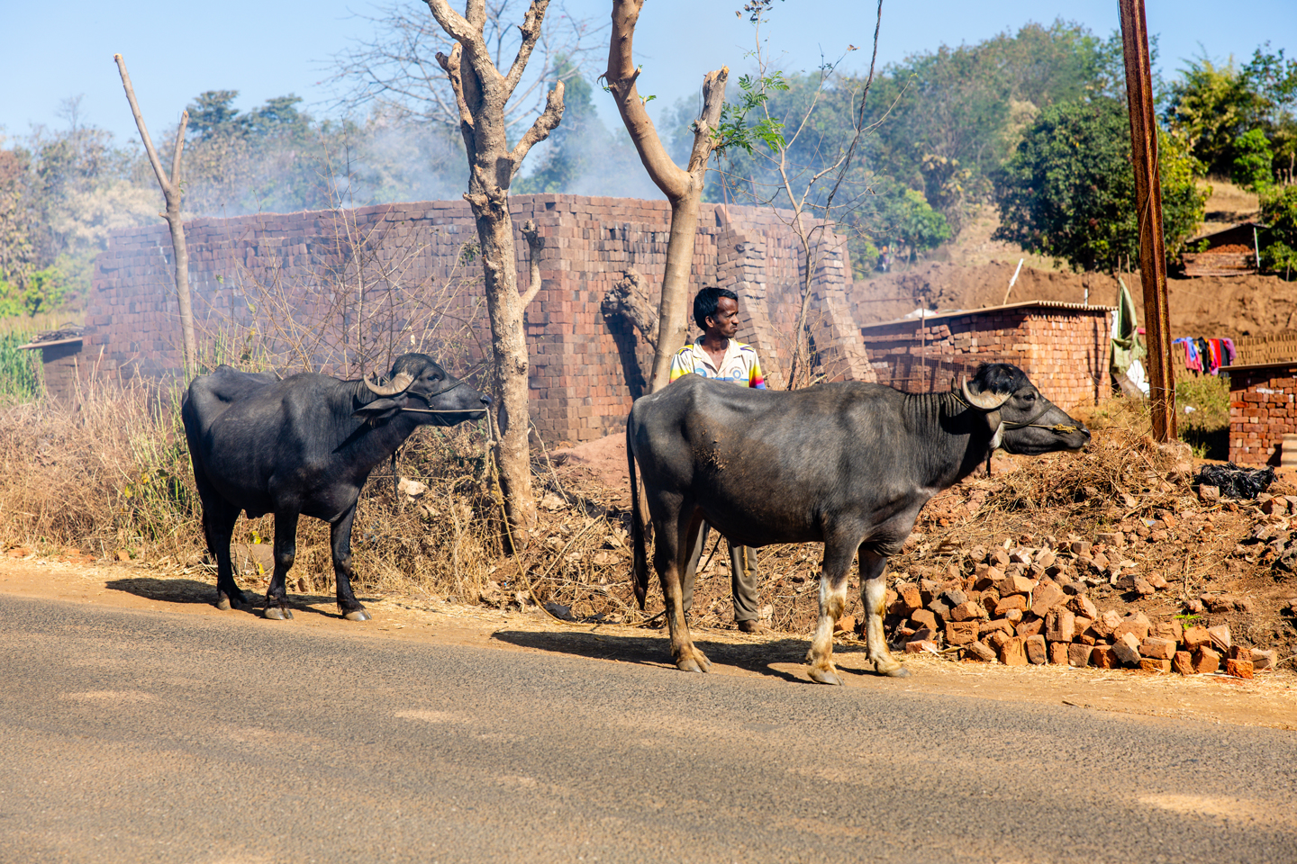 From here on in the level of chaos on the roads clicked up a notch, for the remainder of the journey into Vadodara. The final regularity of the day had to be cancelled, as it was just too busy to run safely or fairly and instead, we could all enjoy the sights, sounds and smells over the long run in. There were endless lines of Oxen, transporting towering carts of sugar cane to factories, alongside lorries doing the same. There were towns full of people, on roads lined with market stalls and street food vendors, with the noise and hubbub matched by the colours displayed across the roadside arcades. There were also plenty of roadworks, with a pipeline installation in particular causing more than its fair share of disruption and destruction, quite literally ploughing through the front of people’s homes.