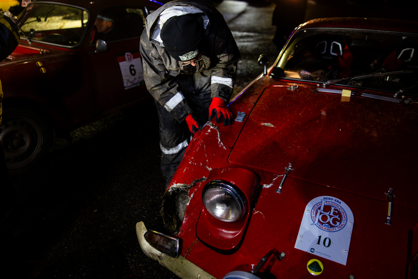 Some crews didn’t even make it as far as the TC Section after issues in the tough regularities beforehand. Helen and Peter Hanimann from Switzerland stopped in a little lake with the engine on their Alfa Romeo Giulia Super having drowned out; Helen said; “We were in a huge puddle in the dark, stuck for quite a while, then eventually we got towed out! Helen and Peter probably asked for divine intervention and their call was answered, as the very first owner of the car in 1972 was actually a Nun!