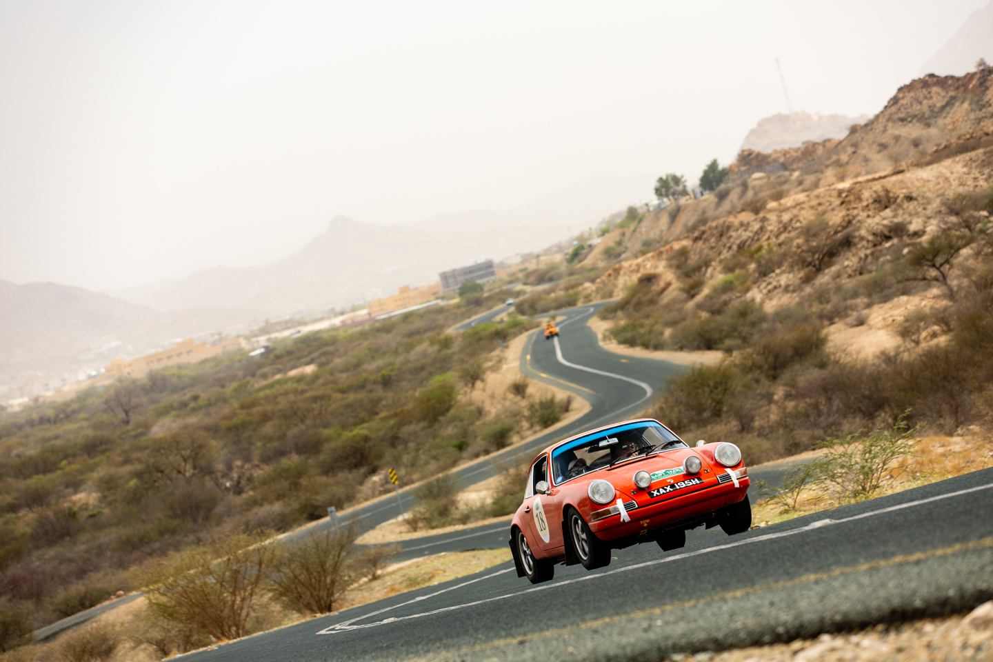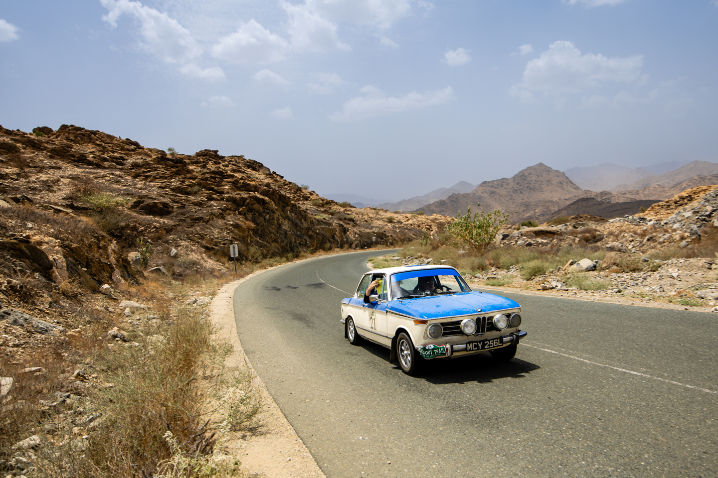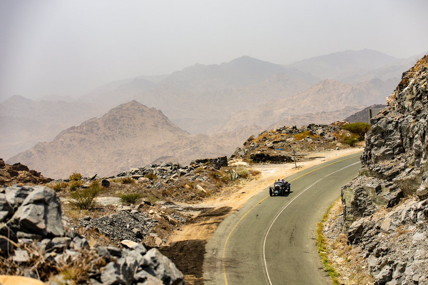 The first climb plotted a course up the rocky slopes of Jabal Umar. It was a twisting route, but on good tarmac and with inclines that weren’t too ridiculous, with a fantastic view afforded at the top after the final timing point. Unsurprisingly, the more powerful cars had an easier time of things and with just a second of penalty the honour of best on reg went to Xavier and Lucas de Sarrau, sitting at the top of the leaderboard and clearly determined not to drop time to their rivals, as they had on the previous day. Leaving the regularity with 3 seconds of penalty were Richard Clark and Jonathan Round, showing that the pre-war cars could mix it with the newer machines just as well.