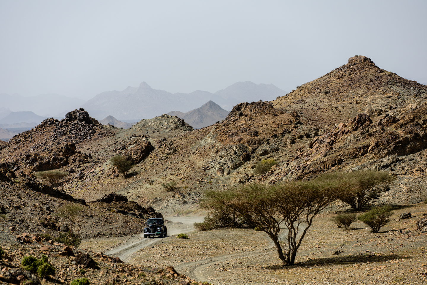 Things got a little trickier after the timed section had finished, with 30km of offroad tracks still to drive before the route returned to tarmac. These required plenty of care, as recent rains had left many of the tracks in a poor state, with some very steep wadies to climb and the regular tracks strewn with large rocks that had not yet been cleared by traffic. Whilst it was non-comp it required full concentration, and even then, the desert could still bite. David and Matthew Leblanc were to suffer the worst of it, in the Volvo that had already been on the wrong end a desert rock thumping on day two of the rally. This time their sump guard was ripped clean off and pushed the sump up into the engine, leaving them needing the sweeps to tow them almost 30km to the road, so they could be properly recovered. The mammoth tow would see two tow ropes snap, but worse than that the car is out of the rally, and the father and son crew will continue in a hire car. Nothing could dampen their spirits though, as they have had a blast and learned a lot on their road to the 2028 Peking to Paris.