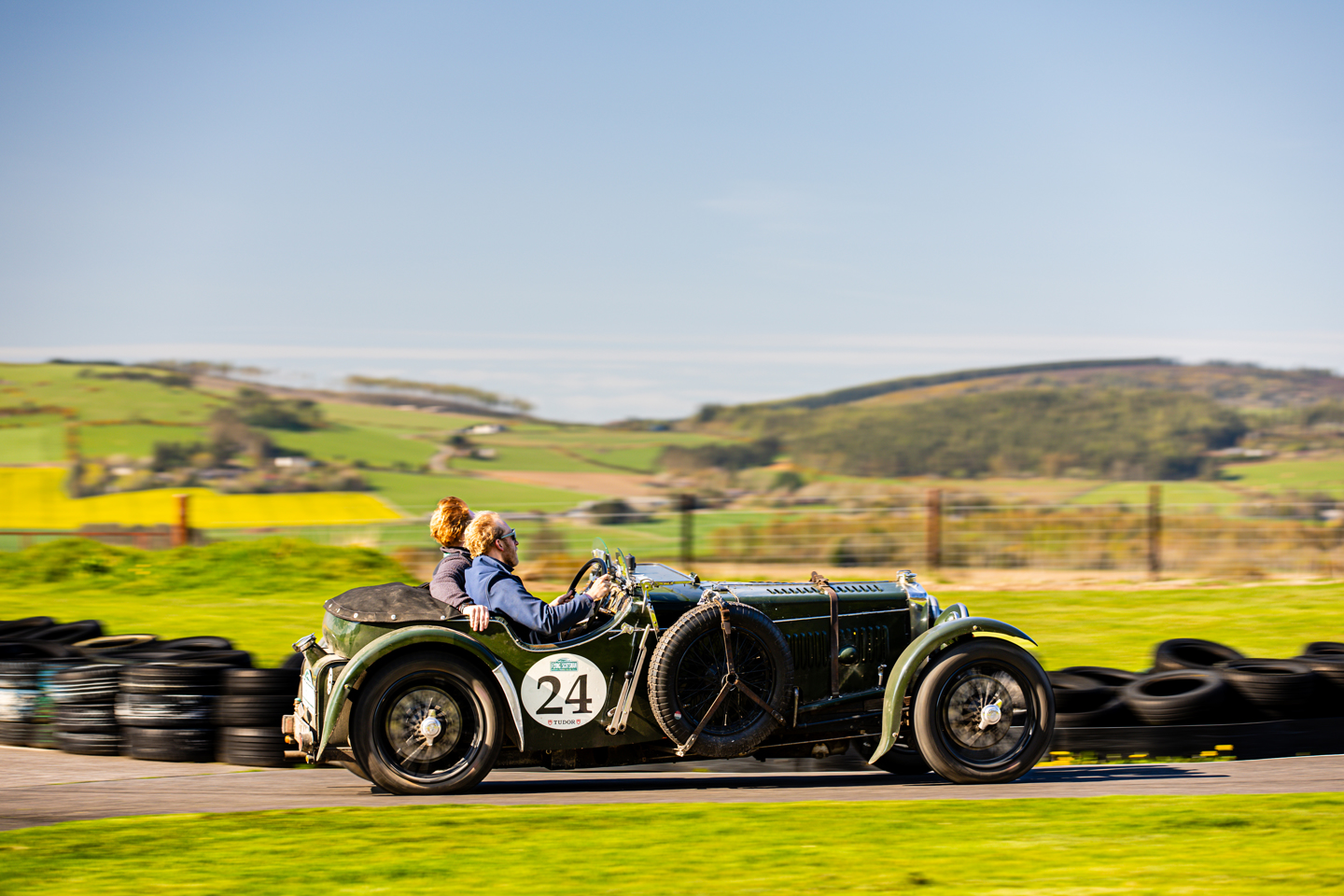 In sensational weather which witnessed the Spanish and Australian crews reaching for the sun block cream, Theo Hunt and Jimmy Galliver continued to lead the 2026 Flying Scotsman as they put on a scorching pace to lead in their Frazer Nash TT Replica.