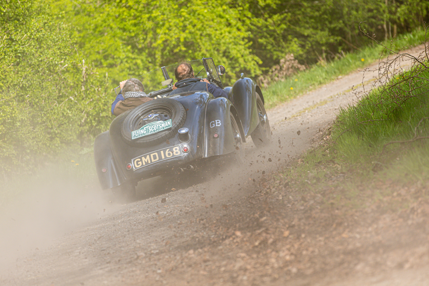 After a valiant challenge to the diminutive Frazer Nash, second place was secured by Mike Dreelan and Miles Fieldhouse, a feat all the more remarkable since this is their debut in this event. 18-year-old Miles skill in the navigator’s seat belies his tender years, and Mikes ability to throw the big Alvis around makes them a formidable team. It was a close-run thing though, with third place Simon Arscott and Emily Anderson only finishing 16 second behind them in the Aston Martin Speed Model. Simon and Emily have also banished mechanical demons on this rally, after suffering more than their fair share of what could have been’s in recent years, and it is fantastic to see the flamboyant pair on the podium.