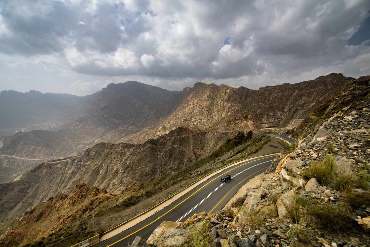 We exit the city and then a 55km run down the beach/ shore of the Red Sea, before connecting over a sand section of 5 kms to the main highway south. It runs down the quiet highway for 120kms before turning inland and encounters increasingly interesting roads as it climbs for 100 kms toward a climb to the top of the rift valley; and we continue our way to the overnight halt in Abha which is at over 2,250m above sea level and known to the Saudis as The Bride of the Mountain with its number of Hilltop fortresses.