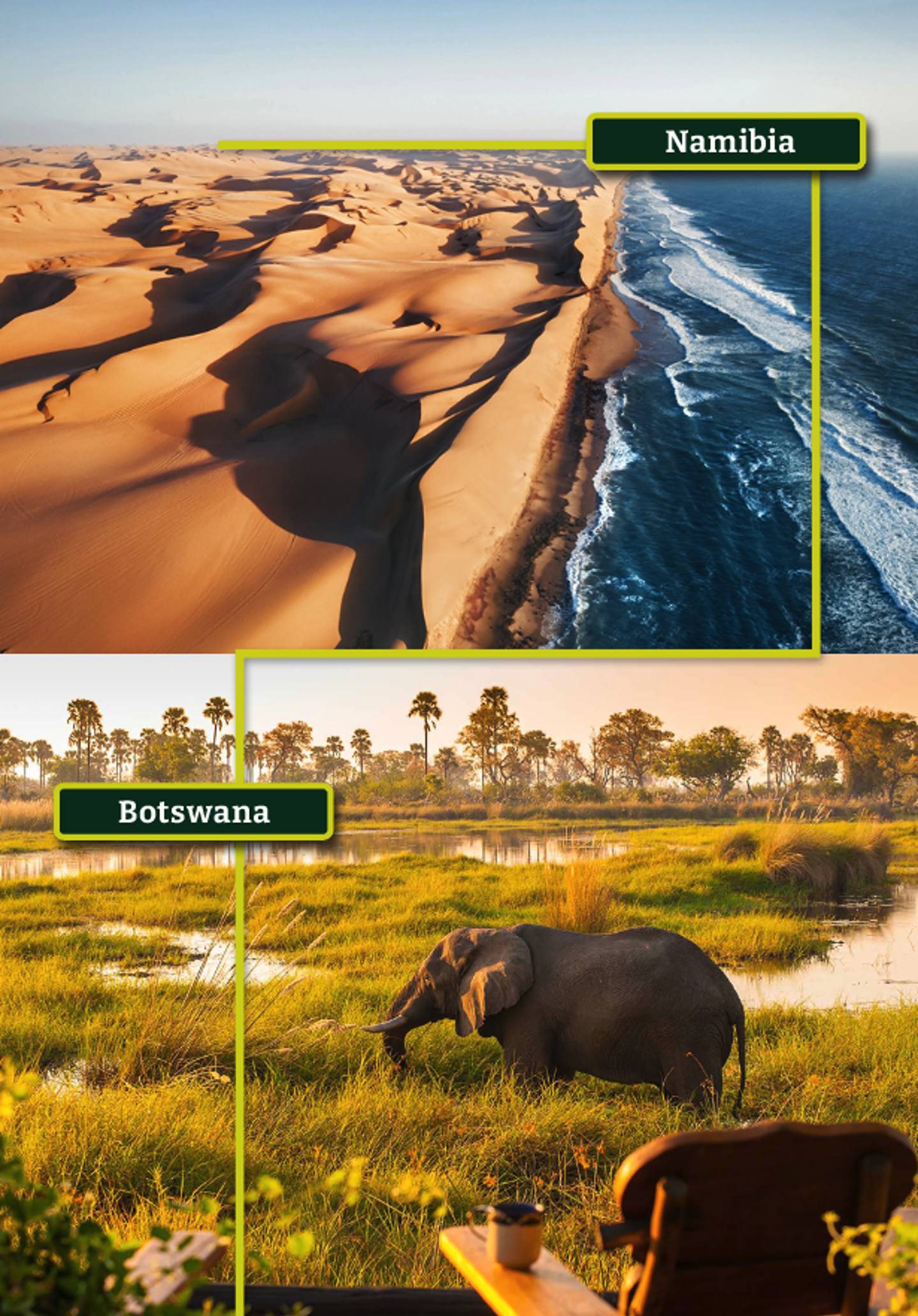 From the beauty and sandy tracks of the Namib Desert, via luxury lodges in the best game parks, whale watching from Hermanus and the wine region, this trip has it all.