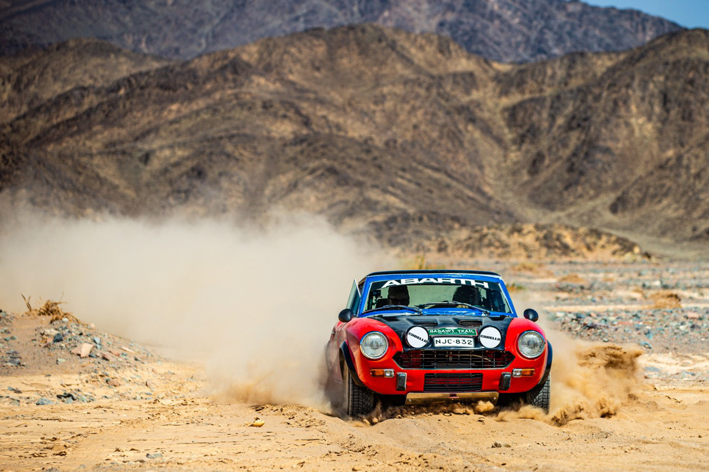 A long transit section followed before the roadbook diverted the cars from the main highway to a desert section of considerable length that would also contain the first regularity of three that would be contested on the day. Appropriately titled ‘Lost Wadi’, this tricky desert section would be a test of driving skill and nerve, as sharp rocks threatened to pierce tyres and deep and steep wadis caused the pace to drop to a crawl in places, as the machines negotiated the sometimes aggressive and abrupt undulations of the ground. It was damn good fun though and finished with a flurry through a smooth flat-out section of sand, as the rocks abated for an end to the reg that had the odd area of soft sand to slow down anyone that wandered from the designated track.